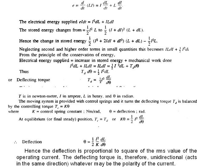 Considering the energy relations when there is a small increment in current supplied to the instrument may derive an expression for the torque-moving iron instrument. When this happens there will be a small deflection dθ a mechanical work will be done. Let Td be the deflecting torque.