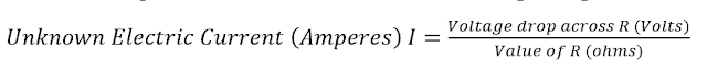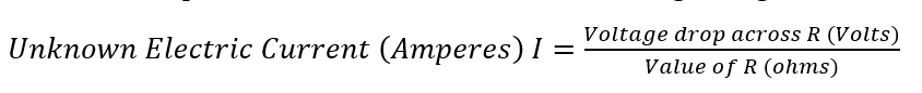 In this method, the current which is to be measured by the DC potentiometer is passed through the standard resistance/resistor R as shown in the figure. The standard resistor should be of a value by which voltage drops are caused by the flow of electric current which is to be measured and its value may not be exceeded to the value of the potentiometer. The following formula is used to measure the unknown electric current in amperes from this circuit which is shown in the figure is given below: