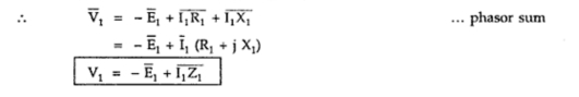 The primary voltage V1 has now three components,1. -E1, the induced e.m.f. which opposes V1