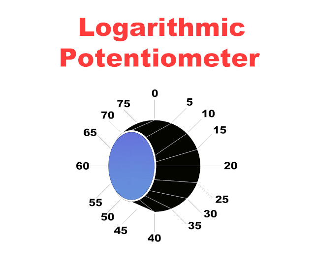 Logarithmic potentiometer is a type of rotary potentiometers and these potentiometers work according to the logarithmic scale. These potentiometers consist of cermet resistive element and a wiper which makes contact between the resistive element and rotatory knob of potentiometer. The whole construction of logarithmic potentiometer is same as rotary potentiometer. Logarithmic potentiometers provide logarithmic functions on its output voltages. These give logarithmic values / fixed values on different position of resistive element. Some potentiometers cannot provide accurate logarithmic voltages.