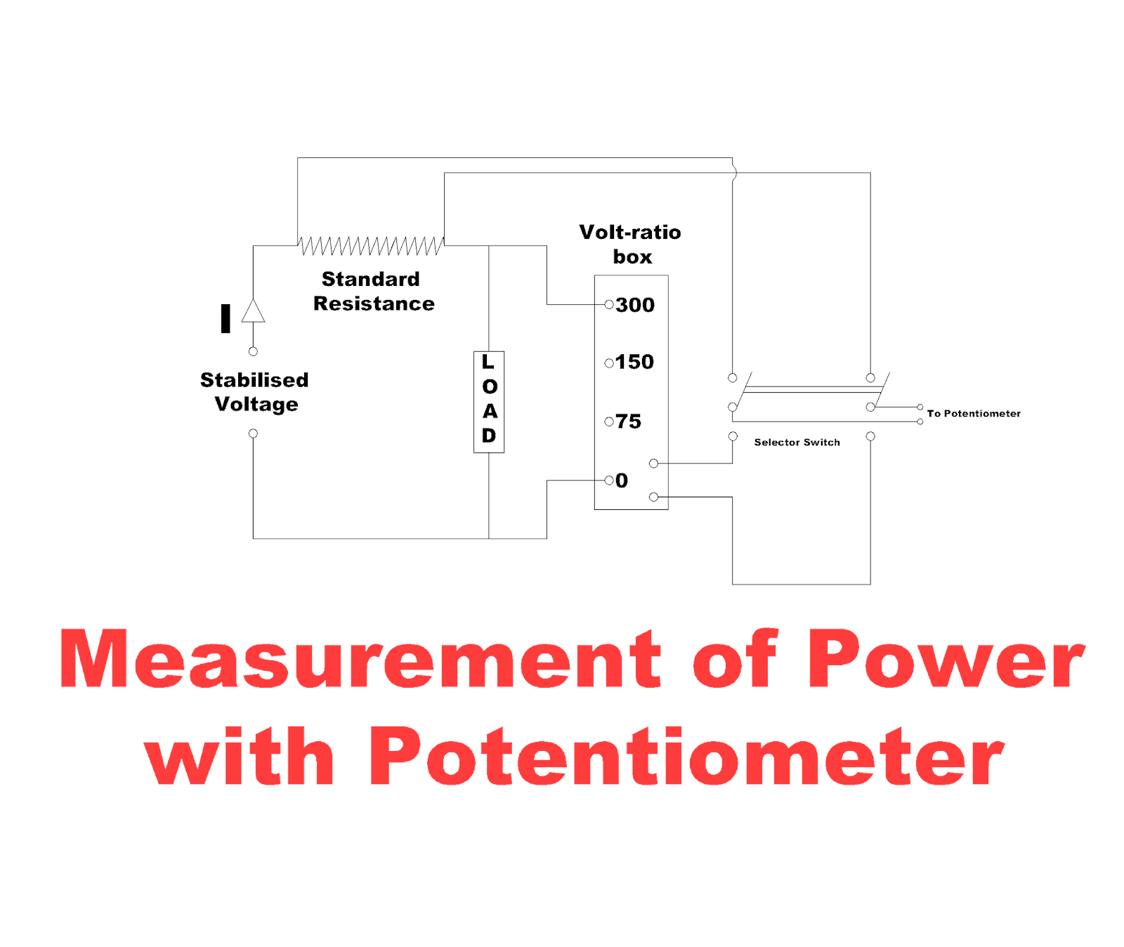 Where VS are voltage drop across standard resistor as measured by the potentiometer. The total power consumed in a circuit is given below in the form of formula: