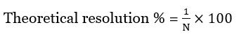 This resolution is for the linear wire-wound potentiometers and it is also named as nominal resolution. The linear wire-wound potentiometers consist of a movable contact which is used to set for any turn of the resistance wire. Assume that N is the number of active turns in the resistive element, then the theoretical resolution in percent is given by:
