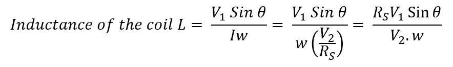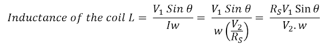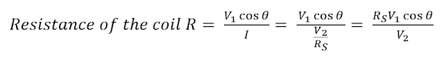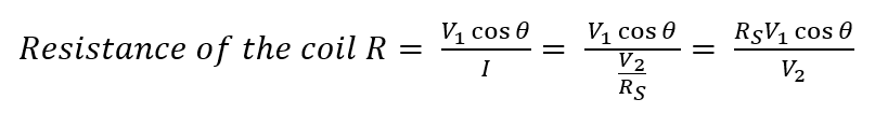 In this method of measurement, a non-inductive resistor is connected in series with the coil and two potential differences V1 and V2 are measured in magnitude and phase by the potentiometer. The voltage drop across the standard resistor RS, V2 = IRS